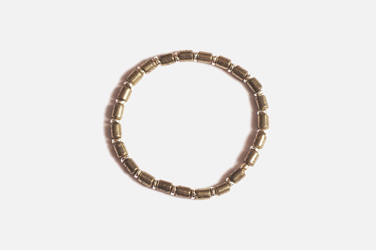 Le bracelet «Sascha» est un modèle pour homme mais que les femmes s’arrachent. Ajustable, monté sur un fil élastique composé de tubes en Pyrite brute et de perles d’espacement en Hématite argentées.
